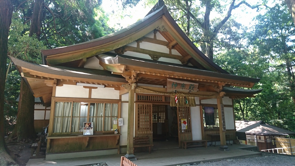 宮崎県高千穂町に鎮座している高千穂神社の本殿脇にあります。昼間の時間帯は資料館として開放されていて、夜の時間帯には夜神楽が行われる場所です。せっかくだったので、高千穂神社参拝後に建物の中に入ってみましたが、何故か?資料らしきものの展示はありませんでした。