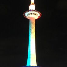 展望台は、京都で一番高く、地上約100mのところにあります。新幹線が京都駅に近づくと、東寺・京都駅ビルとともに、よく見える建築物です。展望台は、WEBでの前売りチケットがお得です。大人800円が700円になります。