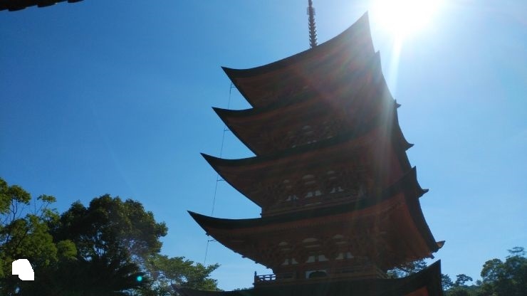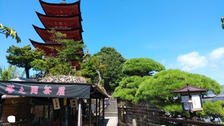 厳島神社などから眺めることができ、風格のある建物を感じることができる。内部の見学などはできないが、これを見ると世界遺産を見学している気分が一層高まった。