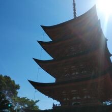 宮島厳島神社に隣接する高台にそびえる建造物。創建は1407年でその後何度か再建されている。