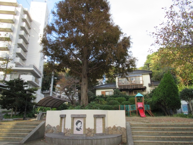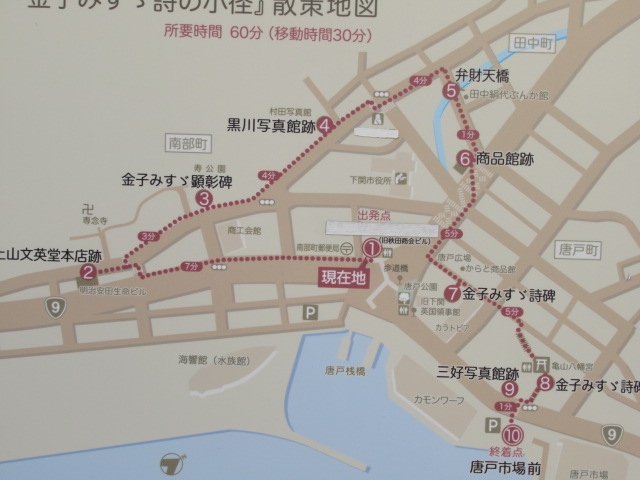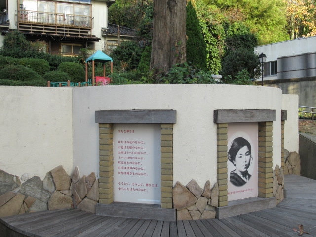 新型コロナウイルスの影響の中で世間は自粛ムードの中、快適走行中もマスクは手放せませんね。他人に迷惑をかけないよう心掛けての旅をしてきました。風情ある下関は幕末から明治時代にかけての観光スポットが多く点在しています。国道9号線沿いにある下関商工会館の道路挟んだ裏側にある寿公園には「金子みすゞ顕彰碑」があります。児童文学の作家として知られる金子みすゞのゆかりある下関には「金子みすゞ詩の小径」と名付けられた散策するコースが観光案内所頂いたマップにモデルコースが紹介されていました。園内の目立つ位置には金子みすゞの肖像画が飾ってあって「はちと神さま」の詩、碑文が刻まれています。この碑は1998年に建てられました。若くして亡くなられた故人を偲ぶ思い出の地をぜひ散策してみてくださいね。