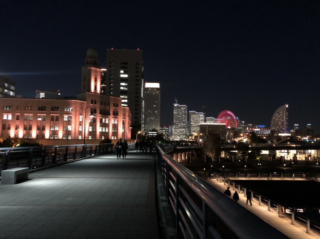 今回はクリスマス前のライトアップを見に行ったのですが、少し離れてみるみなとみらいは赤レンガからランドマークまでひとめで見えて、なかなかいい景色でした。