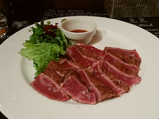 先にきたのは、あかうし。最初は塩で食べてみてくださいってことで、その通りに。肉の味が濃い!わさびがついていたので、それにちょっと醤油をつけて。あ、わさびで食べるのも、やっぱり好き。