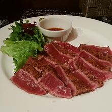 ひろめ市場の中にある土佐あかうしとワインのお店で赤うしを頂きます。