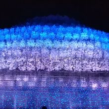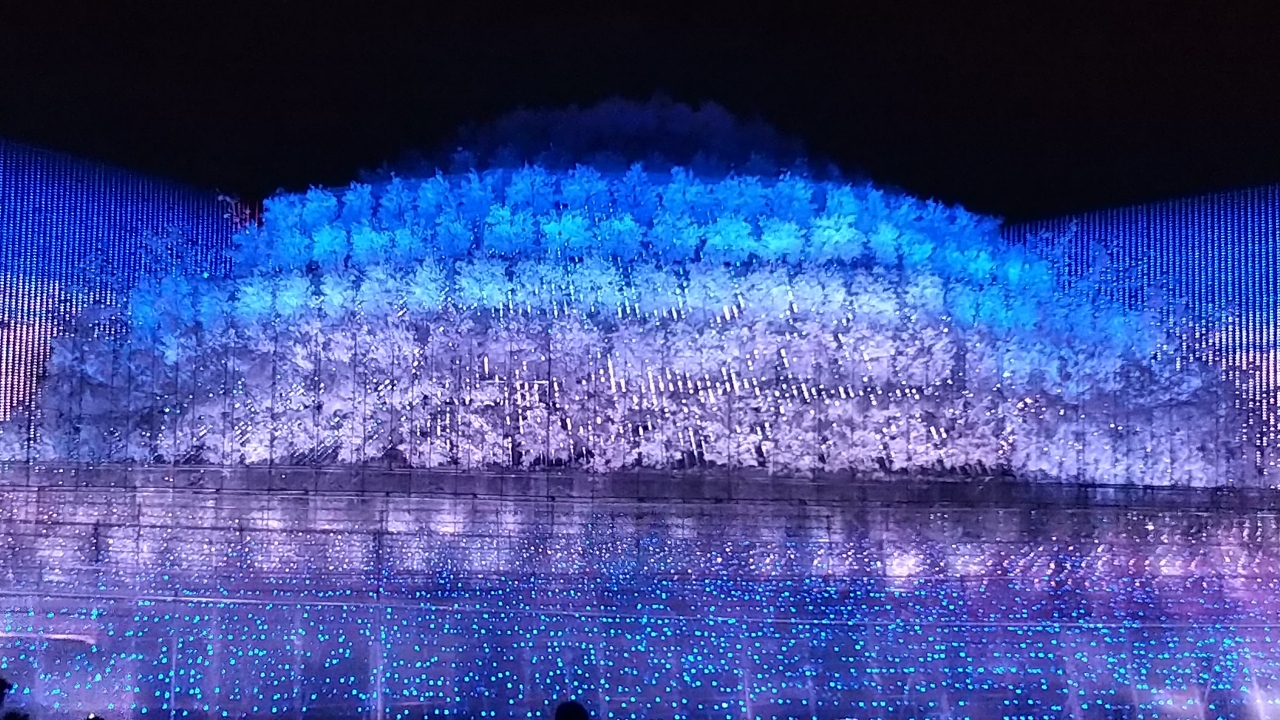 イルミネーションは園内のあちこちであり、どこもとてもきれいでした。特に光のトンネルは長くてキラキラして素敵で、そこをぬけるとある大樹のイルミネーションは、いろいろな世界観がどんどん現れてきてあきない感じでした。様々な色のライトで、幻想的な雰囲気でした。