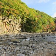 岩手八幡平,松川渓谷にある紅葉の名所の一つです.この一帯は火山地帯で,そのために河川脇には反り立った玄武岩の壁が出来ています.紅葉の時期になると,この玄武岩と紅葉のコントラストが美しく,沢山の観光客が写真撮影に訪れます.今回は三ツ石山登山の後で訪れたので,時間がやや遅く,殆ど人はいませんでしたが,却ってそれが,美しい風景を堪能するのに十分でした.
