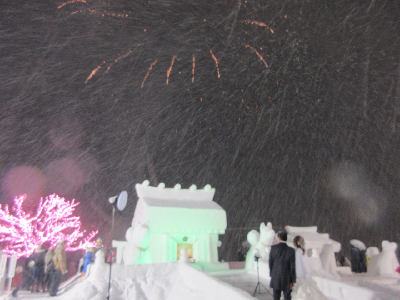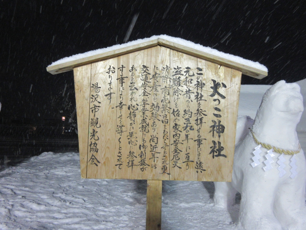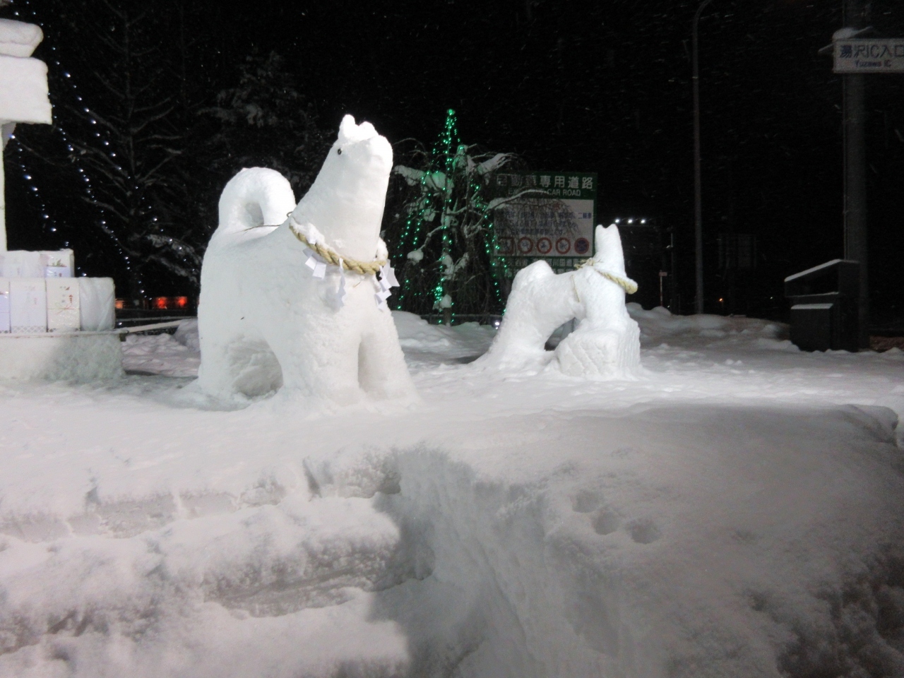 湯沢市で行われる雪祭りです.秋田の冬のお祭りと言えば,湯沢市の隣の横手のかまくらが有名ですが,こちらの犬っこ祭りもかまくらに負けないくらい立派な物でした.会場では太鼓の演奏や花火などもあり,大人も子供も楽しめるような工夫が見られました.雪像もとても立派でした.