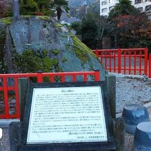 有馬温泉の太閣橋付近に祀られている石。もともとは投げた小石だったが年がたつにつれて巨石になったという伝説を残す石となっている。
