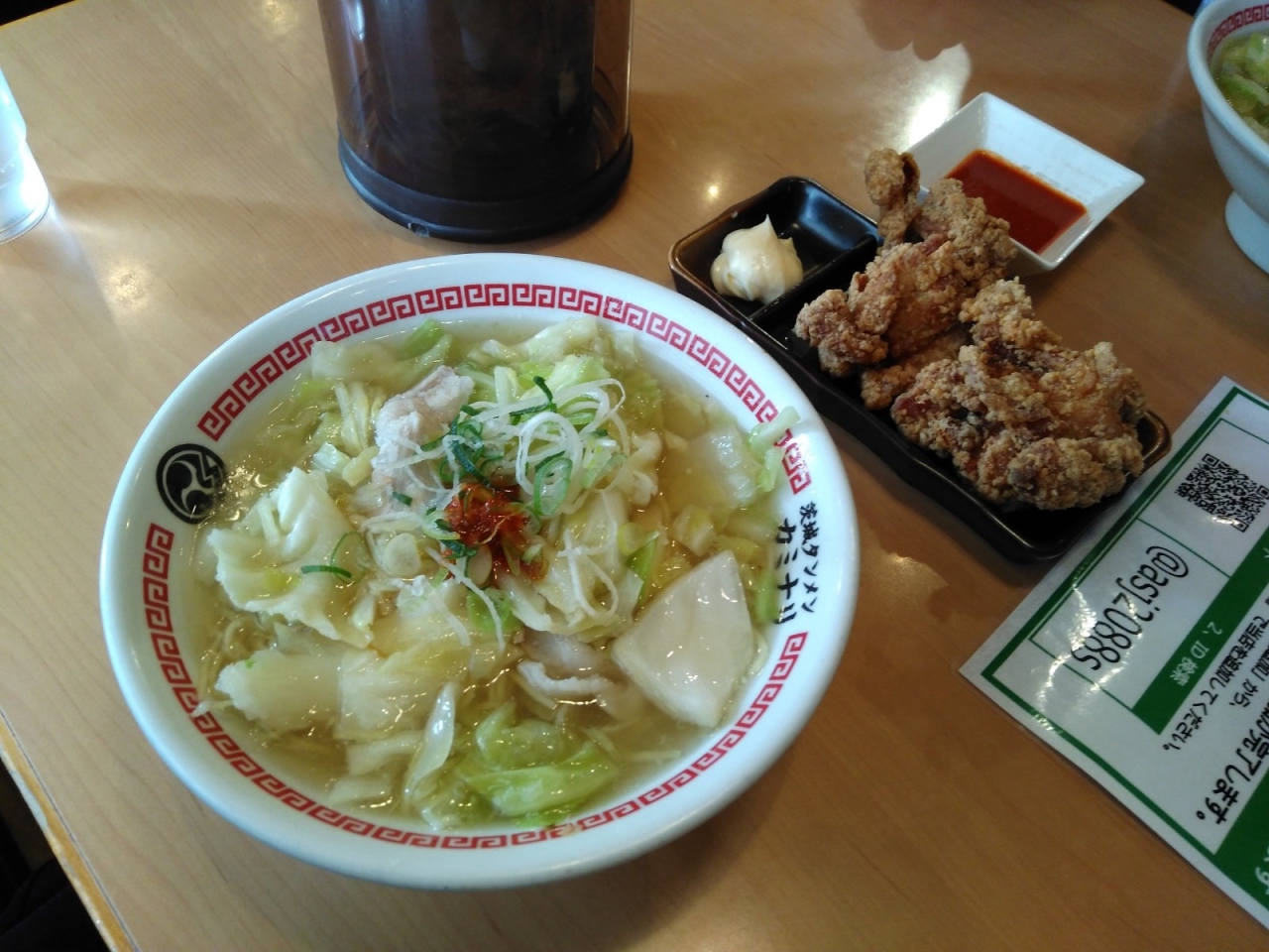 チェーン店なので休み時間ない筈と遅いランチで利用しました。茨城タンメンと鶏の唐揚げを食べました。連れは唐揚げの味が薄いと感じたようですが、大きな唐揚げは柔らかく、薄味でも美味しかったです。会計は現金のみでした。