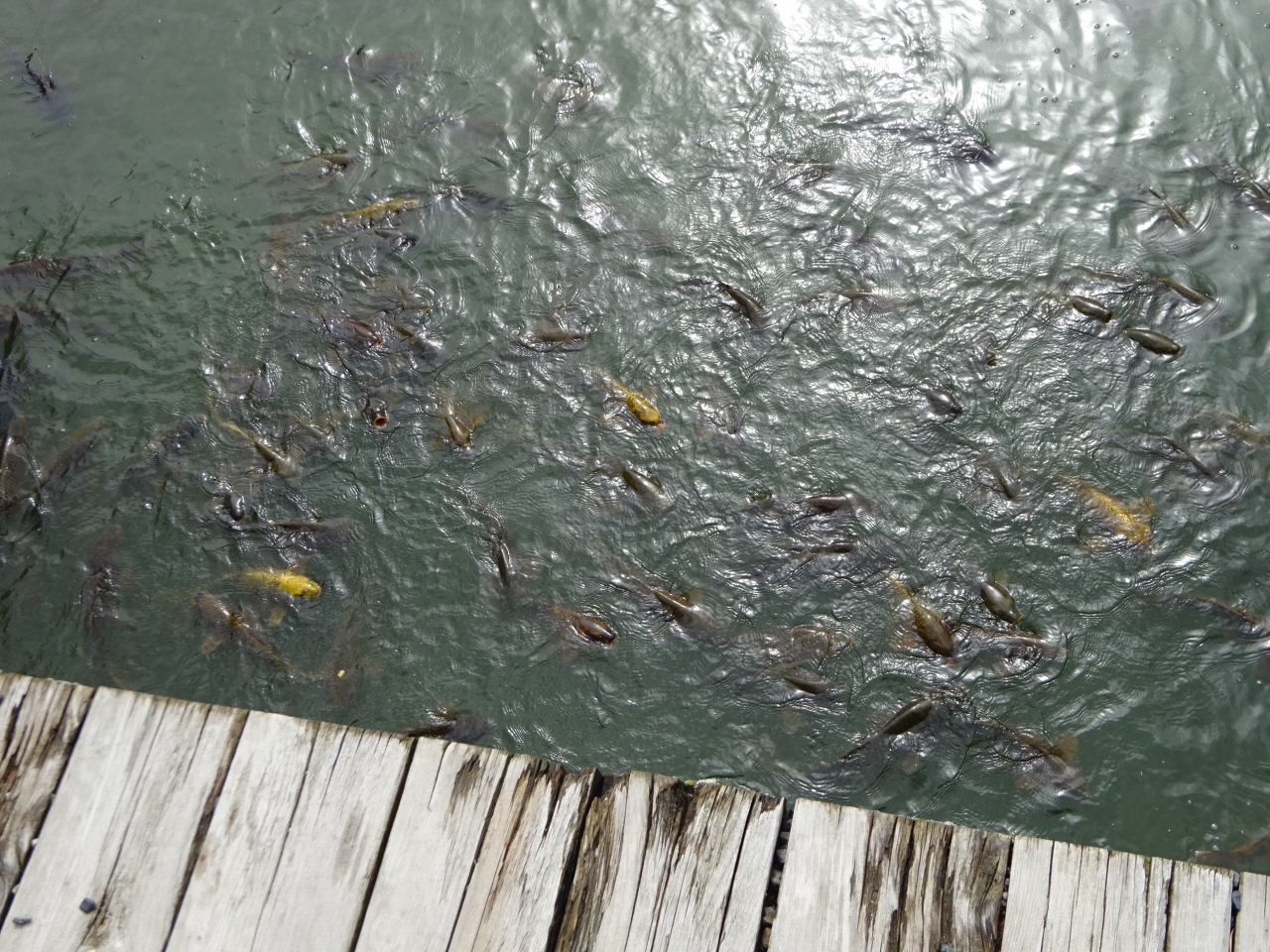 多くの方がお堀の鯉を眺めてから櫓門を通っていました。