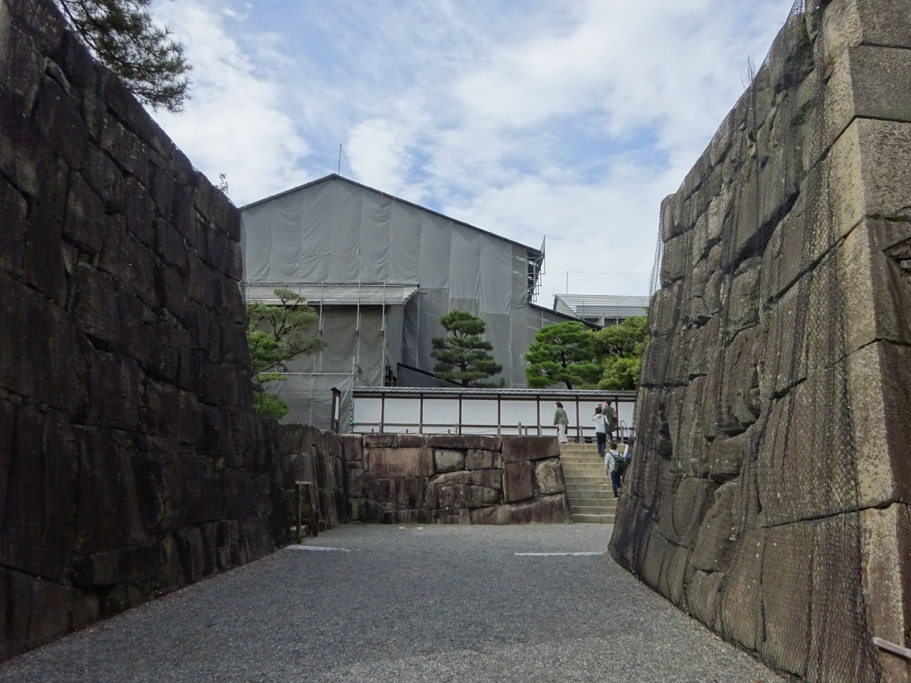 本丸櫓門は内堀の上にあり、内側は塀に囲まれています。櫓門まえの内堀には鯉が沢山いて二の丸御殿側にはなんとエサの自動販売機が設置されていました。