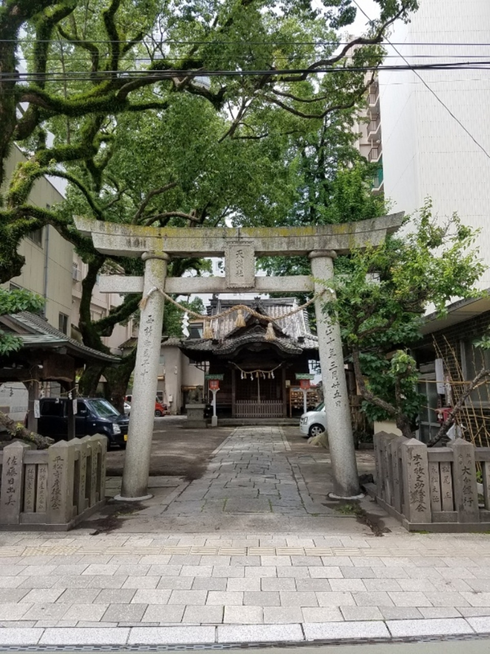 寿町1丁目交差点の近くにあります。こじんまりとした神社ですが拝殿が異様な存在感を放っています。三角の破風のところに龍が、その下方には鳳凰の彫刻があり、それら自体は他所でも見かける気もしますが、それらを取り巻くように渦巻きのようなものが立体的に、無数に敷き詰められており、この密度に圧倒されるような力を感じました。天満社なので菅原道真公が御祭神ですね。学業成就のご利益が大きそうです。