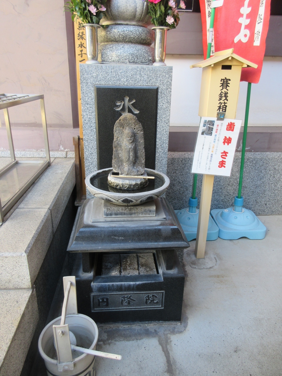清澄白河駅から8分ほど歩いた平野交差点近くの寺町にあります。近くの日蓮宗寺院浄心寺の塔頭です。5階建ての立派な葬祭場を持つ玉泉院の向かいにあります。コンクリート造りの本堂は淡いピンク色の柱と屋根の下の鮮やかな模様が特徴です。本堂前に深川歯神さまが安置されています。備え付けの歯ブラシで歯神さまの歯を磨き歯の健康や子供の発育を願います。歯が弱いのでお詣りさせていただきました。三好・平野寺巡りで寄ってはいかがでしょうか。