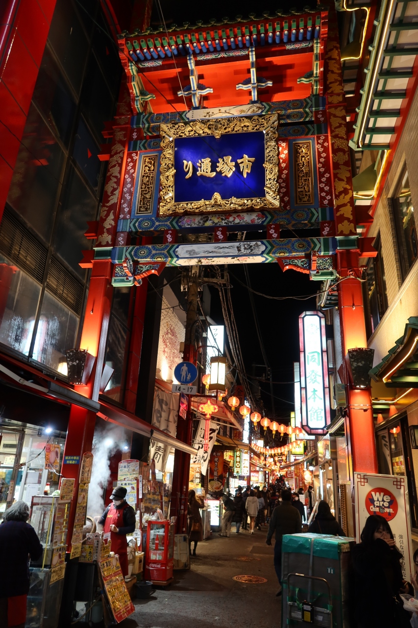 横浜中華街の中華街大通りと関帝廟通りを結ぶ市場通りの入口に設けられた門が市場通り門です。市場通りは車一台が通れるほどの狭い通りですが、通り沿いには中華料理店は勿論、占い店、雑貨が並び、狭いが故に一層賑やかに感じます。その入口にある門が市場通り門。この門を潜って市場通りを歩くと中華街の魅力が一層深まります。