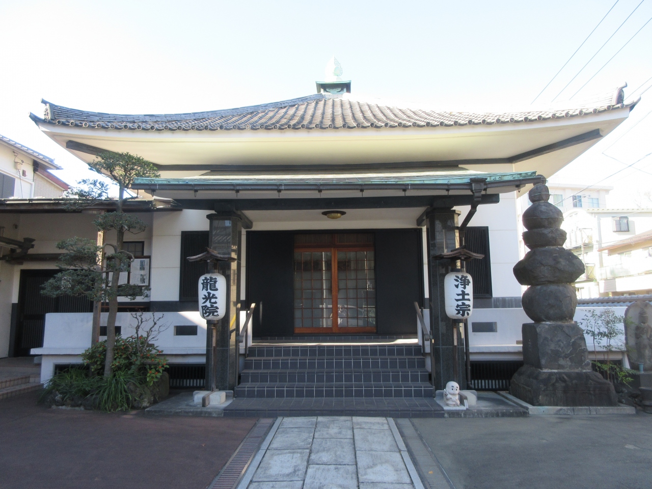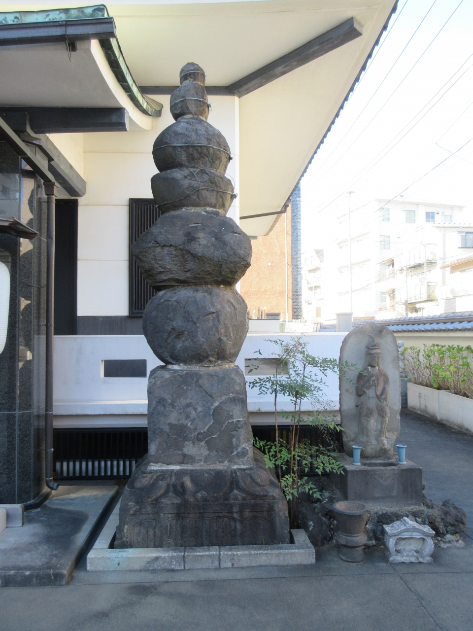 清澄白河駅から8分ほど歩いた三好3丁目交差点角にあります。1611年に雲光院の塔頭として馬喰町に創建され、1682年に現在地へ移りました。本堂のなだらかな瓦屋根の曲線がきれいです。深川七福神毘沙門天が祀られていますが、見ることはできませんでした。本堂前に石造五輪塔と観音菩薩像があり、説明書きがありました。知っている五輪塔とは形が違いますが、温かみのある五輪塔でした。元旦から1月7日まで毘沙門天の御開帳があるので、深川七福神に関心のある方におすすめです。