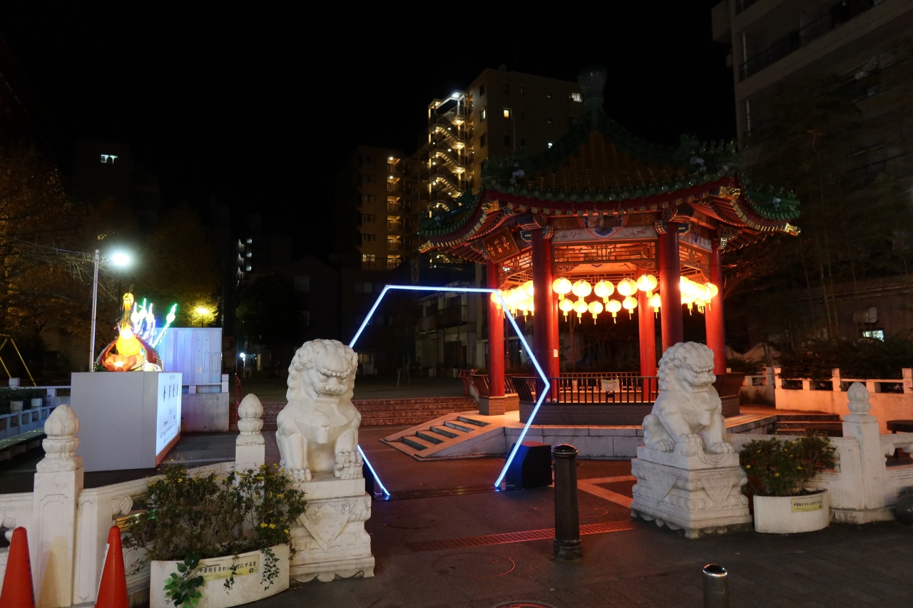 横浜中華街の関帝国廟通りの東側にある公園が山下町公園です(海沿いにあるのは山下公園)。昼間は周辺の店で買った食べ物を公園のベンチに座って食べる人が多く、あまりいい雰囲気ではありませんが、夜はコロナ渦だからか殆ど人も居らず、ライトアップされたイルミネーションが飾られた静かな公園でした。これならデートでも使えるかも。