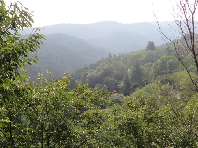 吉野山といえば桜です。しかし、今回8月に行きましたが新緑の吉野山もなかなかのものです。芭蕉と吉野山は深い関係があるようで、やはり旅好きの芭蕉は吉野山にも来てました。駐車場の近くの案内板の近くは高台になっていて、ここから見た吉野山はなかなかのものです。