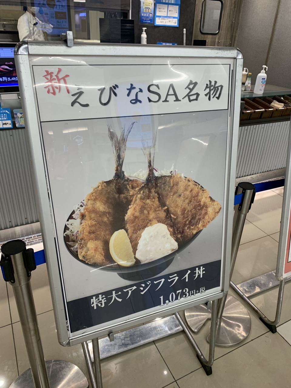 おすすめメニューは 新海老名サービスエリア名物「特大アジフライ丼」1073円 +税 ですね