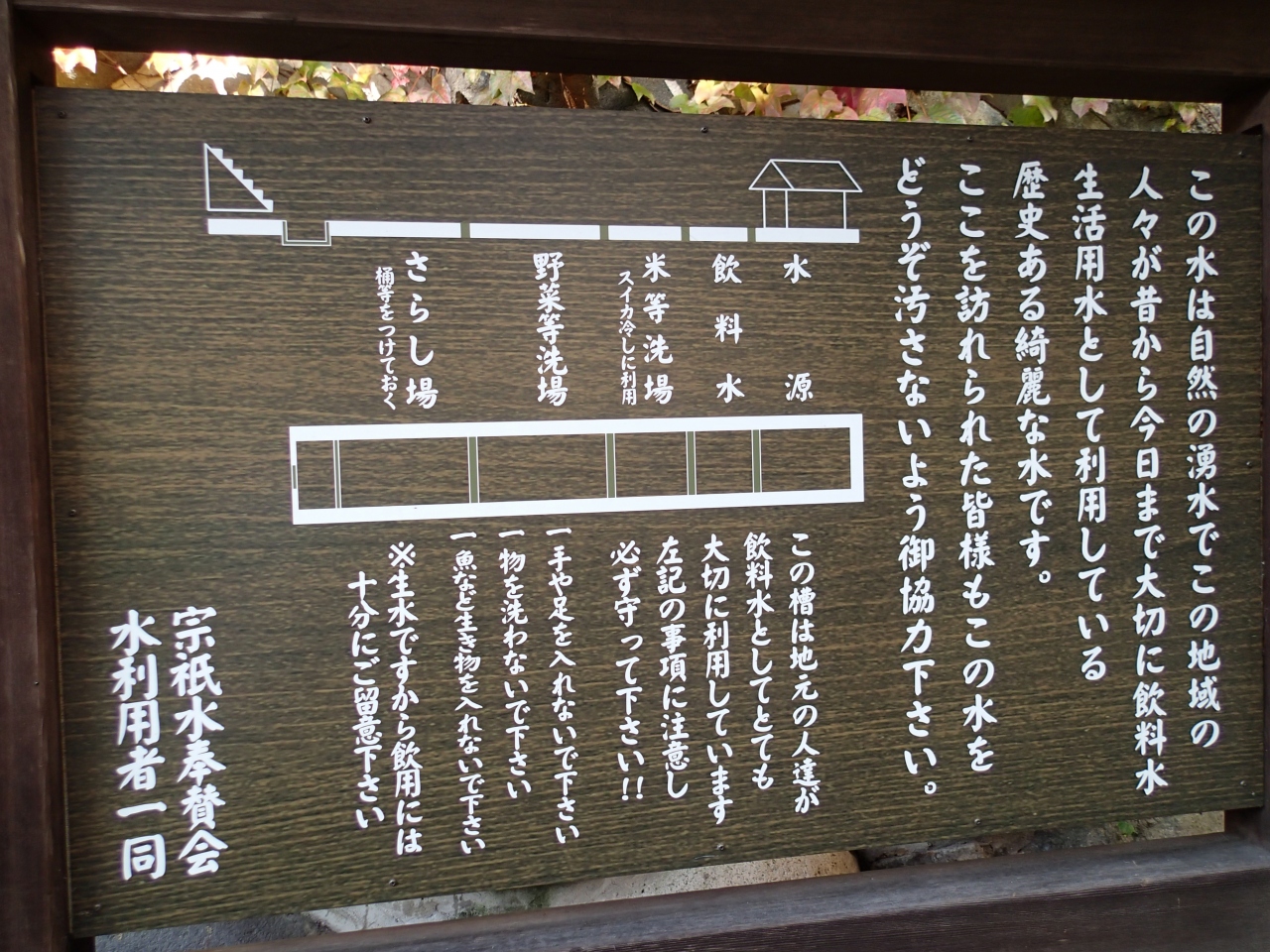 昔から、地元の人に大切に利用されているようで、見学者向けへの案内板兼、注意事項書きが建ててあります。夏はスイカを冷やして食べてみたいです。