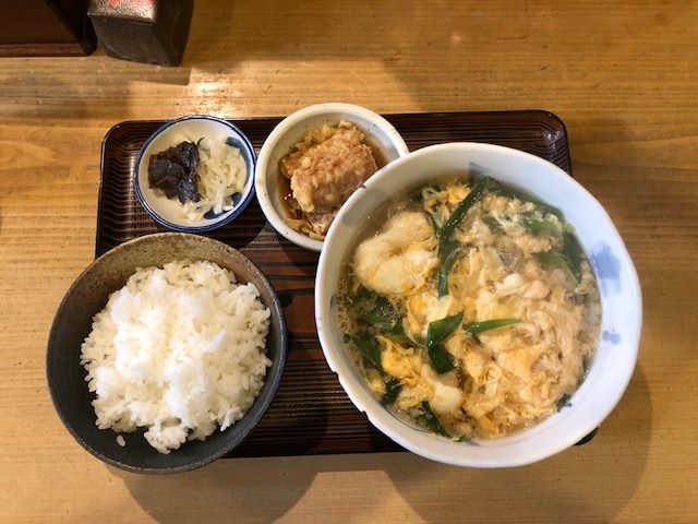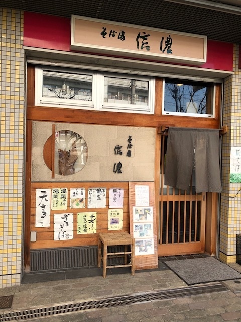 南海高野線北野田駅から徒歩5分ぐらいのところにある蕎麦屋さんです。店内はカウンター10席ぐらいと奥に小さな座敷がありますが、昼食時は結構混んでいます。店名から信州蕎麦を連想しますが、関西風の蕎麦の味です。今回は蕎麦定食を食べましたが、卵とじの蕎麦に小鉢と白ご飯がついています。コストパフォーマンスはいいです。