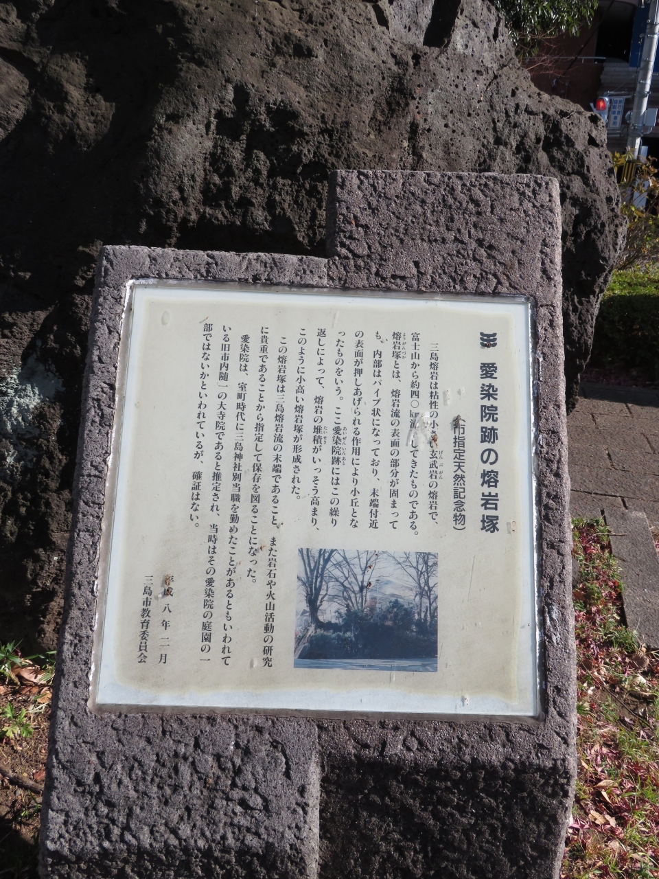 三島駅南口を出て、通りを下ると、道の真ん中の所に岩があります、今は溶岩のみになっていますが、記憶にある限り、昔は水がしたたり落ちて滝のようになっていた場所です。