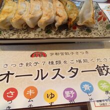 ドン・キホーテ宇都宮店の地下にある来らっせに、さつき餃子が入っています。オールスター餃子をいただいたのですが、ゆず餃子、キムチ餃子、ニラ餃子など7種類の味を楽しむことができ、お得だなあ、と思いました。あまり混んでいなかったので、その点もよかったです。