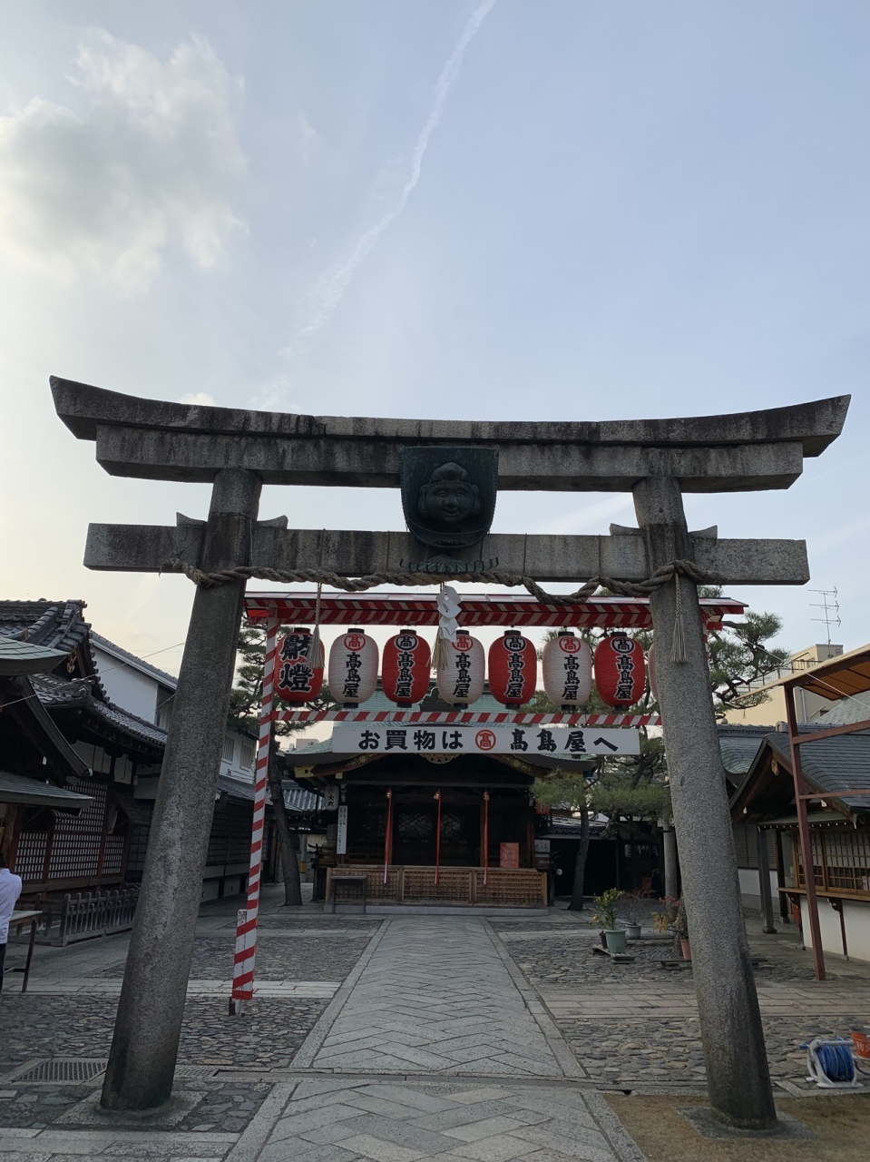 都七福神巡りで訪問しました。鳥居の上の方に恵美須さんのお顔があり、そのすぐ下にある熊手?にお賽銭を投げ入れると良いみたいです!一回で着地してとても良い気分になれました!本殿の横にも、お願い事をする場所があるのでそちらにもぜひ。
