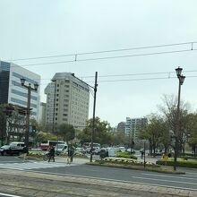 車道も広く交通量も多いですが、歩道もすごく広くて、緑や花なども多い道路です。歩道というか、緑地帯・道路に沿った小公園と言ってもいいような感じです。先の大戦で整備された防火帯なので、これほど幅広い道路が整備できたんですね。
