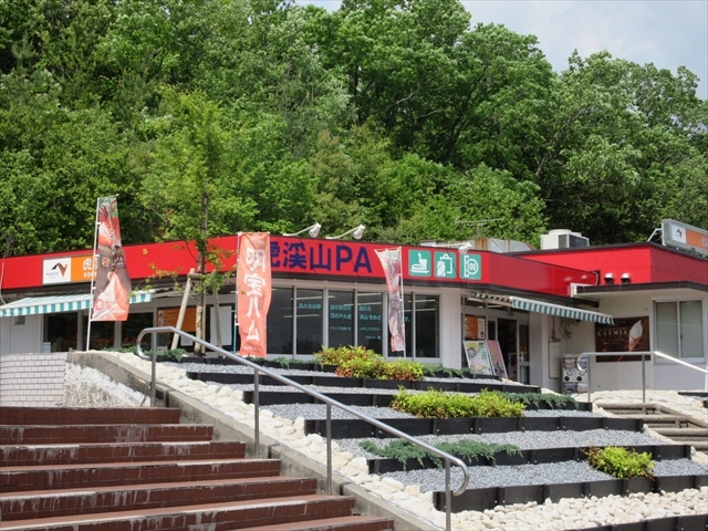 中央自動車道路上り線にあるパーキングエリアです.お土産などを売るショッピングコーナーの他に,フードコートもあります.また,ガソリンスタンドも併設していました.フードコートは,定番のラーメンやカレーの他に,ソースカツ丼のようなものもありました.