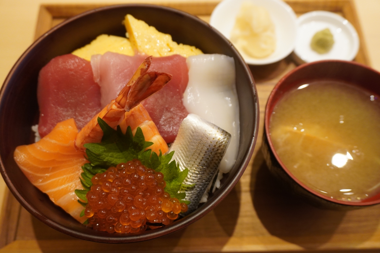 江戸之家 神田店は、神田駅西口エリア。店内には広いカウンターがあって、片隅に座って海鮮どんぶりをいただきました。ランチのリーズナブルな丼なのでそこまでの豪華さはないですが、まあミニマム的な丼。板さんがたくさんいて、活気があるのが印象に残りました。