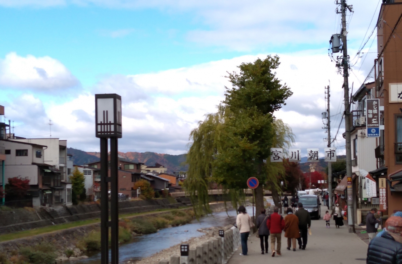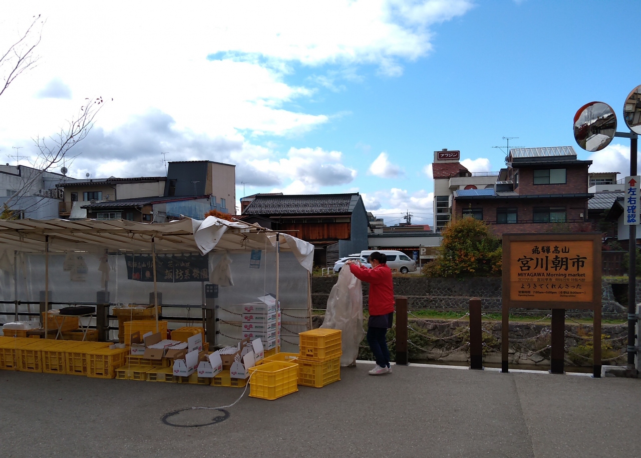 飛騨高山に滞在中こちらの場所を訪れました。宮川沿いに出店が並ぶ朝市はテレビなどでも取り上げられ観光客に人気です。行った時はお店が少なめの印象でしたが、それでも地元の野菜や果物、漬物や乾物など売られていました。