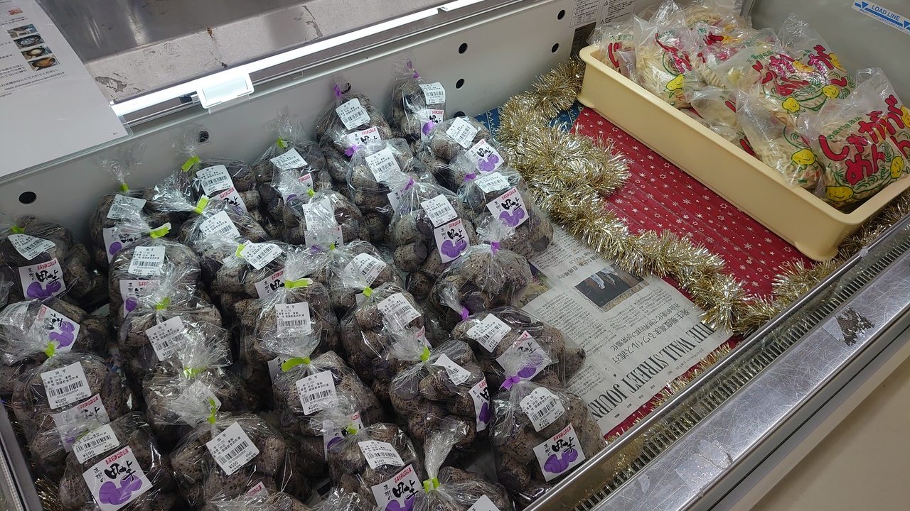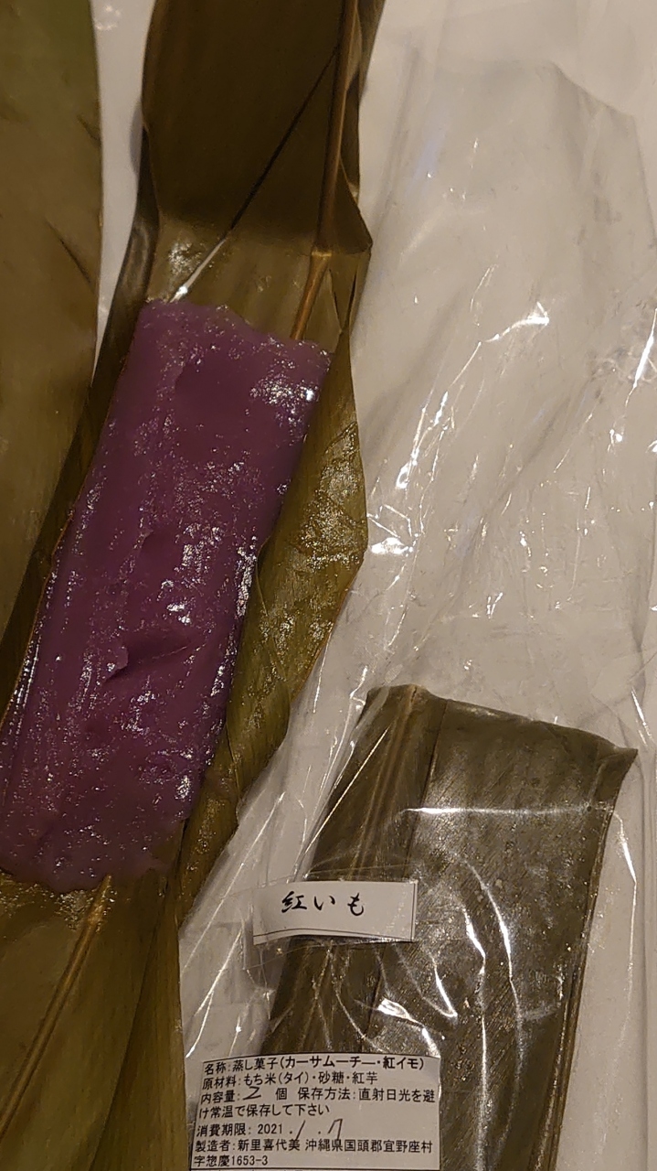 観光案内所があるので観光客向けでもありますが、主に地域住民向けの施設です。地元産品の品ぞろえが超ローカルで、主要な観光施設には置かれていないものが結構ありました。1月ということで地元の方が作られた紅芋のムーチーがあったので買っていただきました。