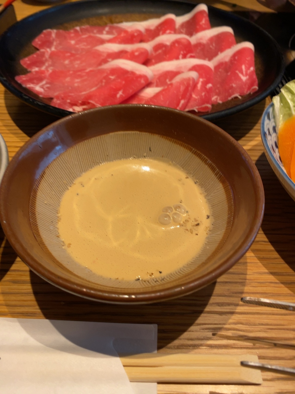 胡麻を自分で擦ったものとゴマダレを合わせたタレが美味しいです。