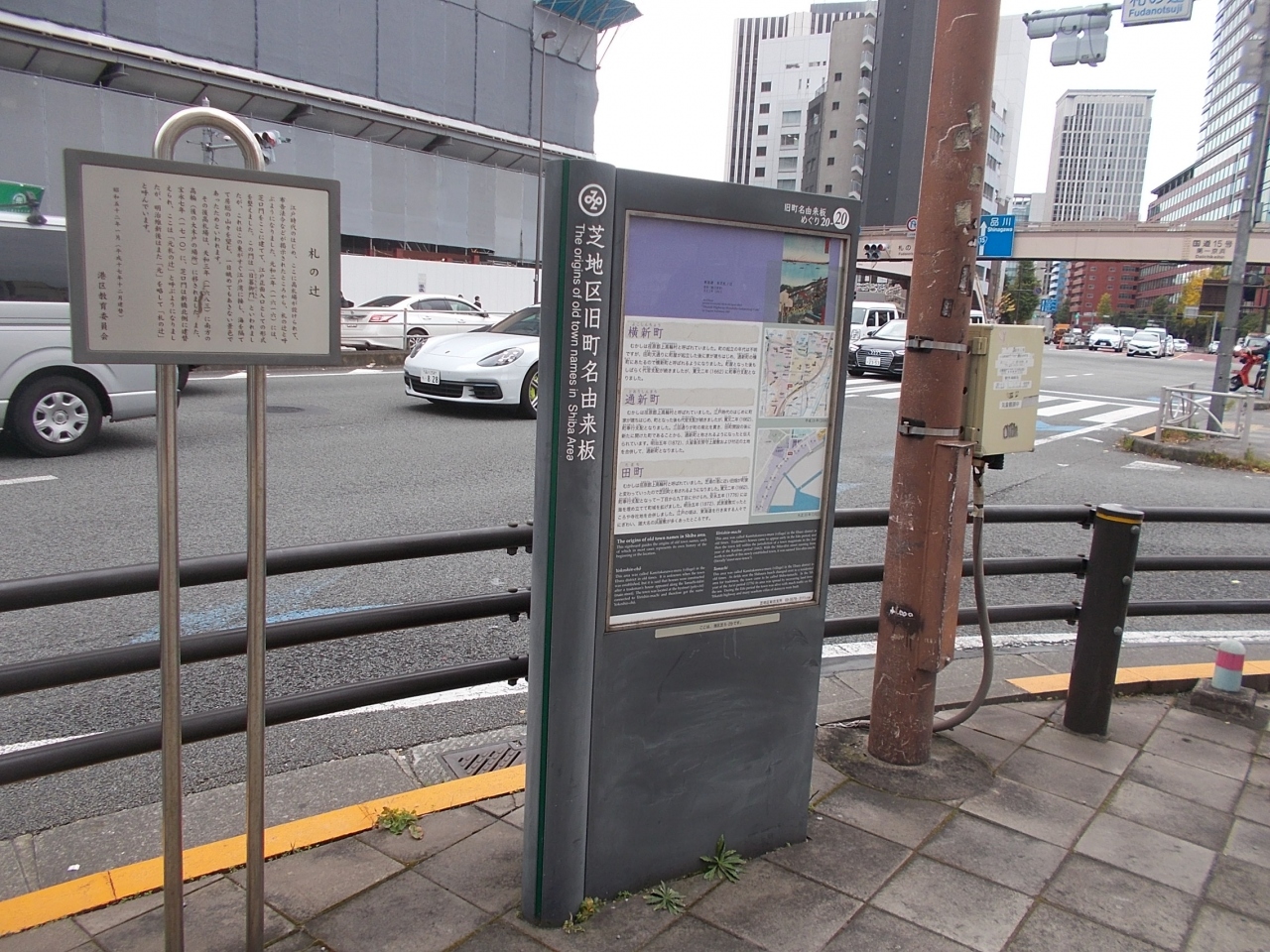 この札の辻は第一京浜と日比谷通りが合流する場所です。地下鉄都営三田線三田駅と地下鉄都営浅草線三田駅とからすぐにあります。ここは江戸時代初期には高札場でした。また芝口門がたてられたのです。その後高札場は高輪大木戸に移り門も移動したのですが名前だけは残されたのです。今は説明板があるだけです。