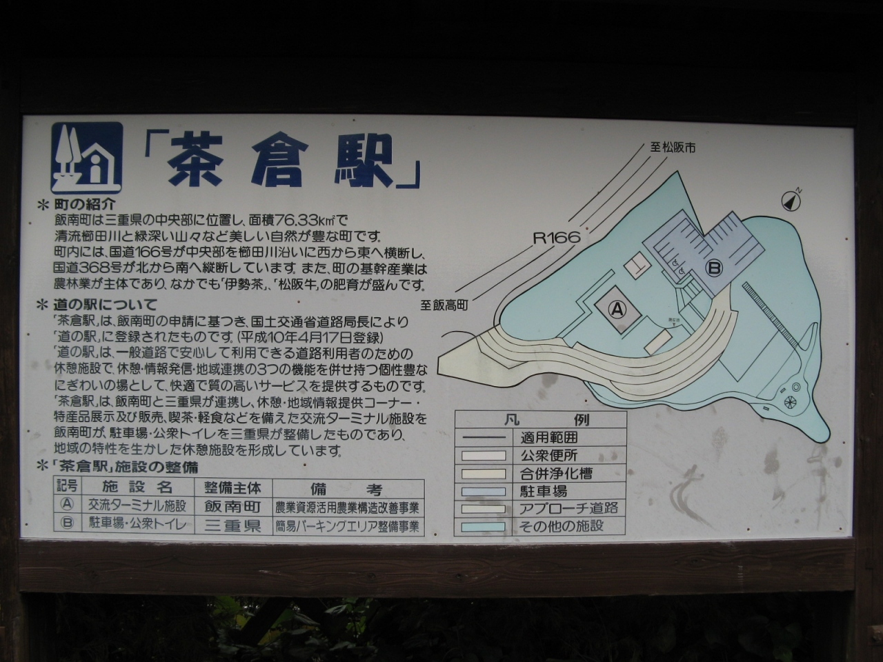 松阪市国道166号線沿い小高い山丘の上にある小さな道の駅です。駐車場が狭いので天気の良い観光シーズンの休日なんかは一杯になるかも。産直品の販売コーナーではお茶の町らしくお茶やお茶を使った食品を中心に野菜や果物が売られていますが商品数は少なめです。周辺は見渡す限りの山とお茶畑で、眼下に櫛田川が流れるなかなかのロケーション。近くには展望台や吊り橋があるので香肌峡を観たいときはここに寄ることをおススメします。