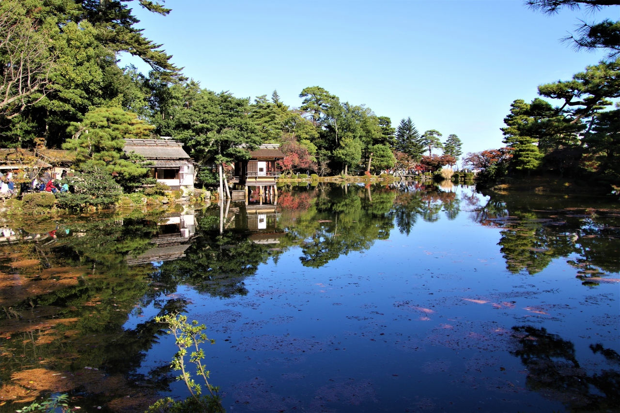 広大な園内には築山、池、茶屋などが点在しており、それぞれの景観を楽しみながら廻遊する庭園です。四季を通じてさまざまな自然美が堪能でき、晩秋には冬の豪雪から木の枝を守るために施される雪吊りが金沢の冬の風物詩になっています。またシジュウガラやヤマガラなど野鳥観察もできます。