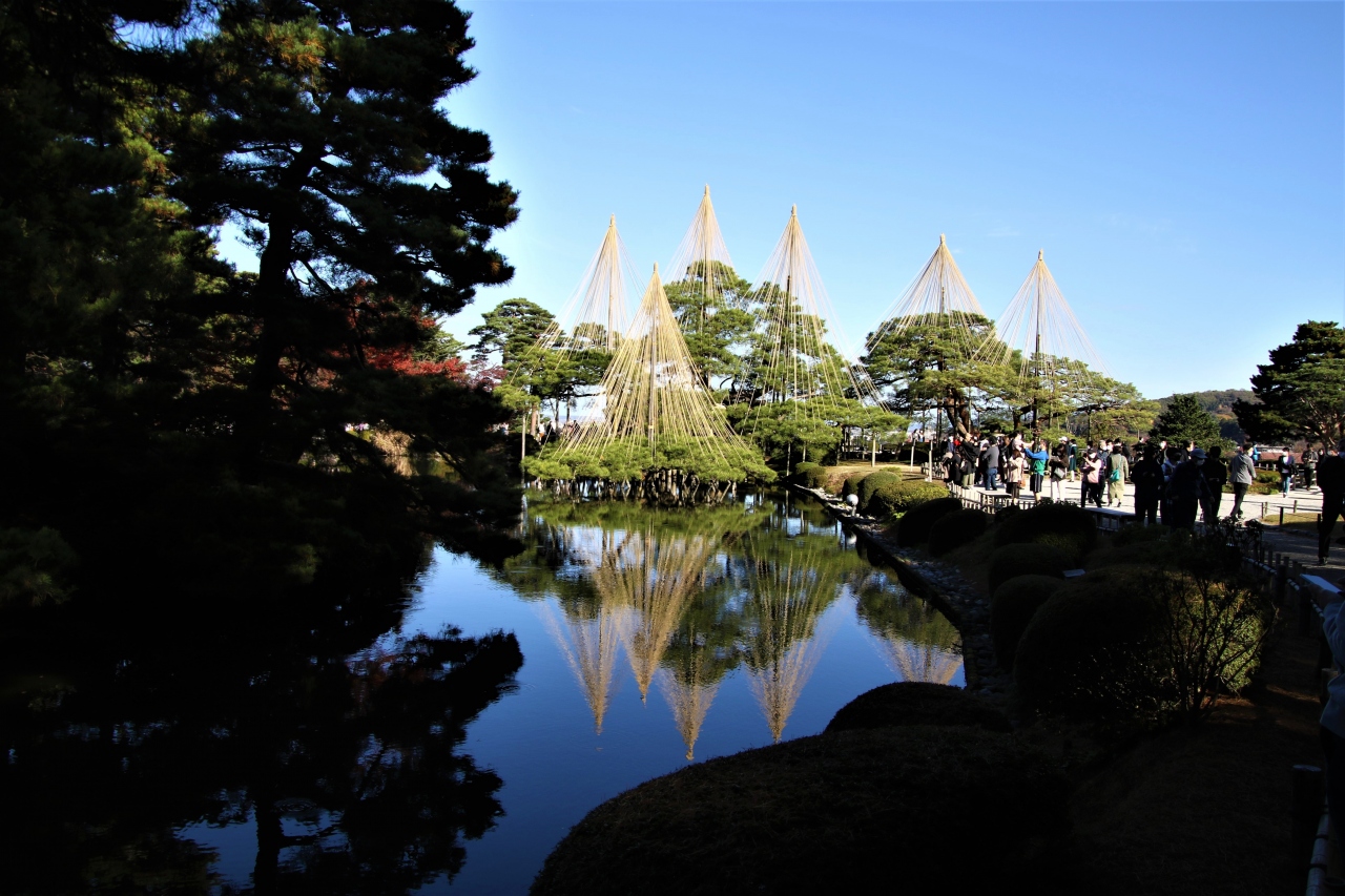 晩秋には冬の豪雪に備えた雪吊りがとても風情がある日本3大名園