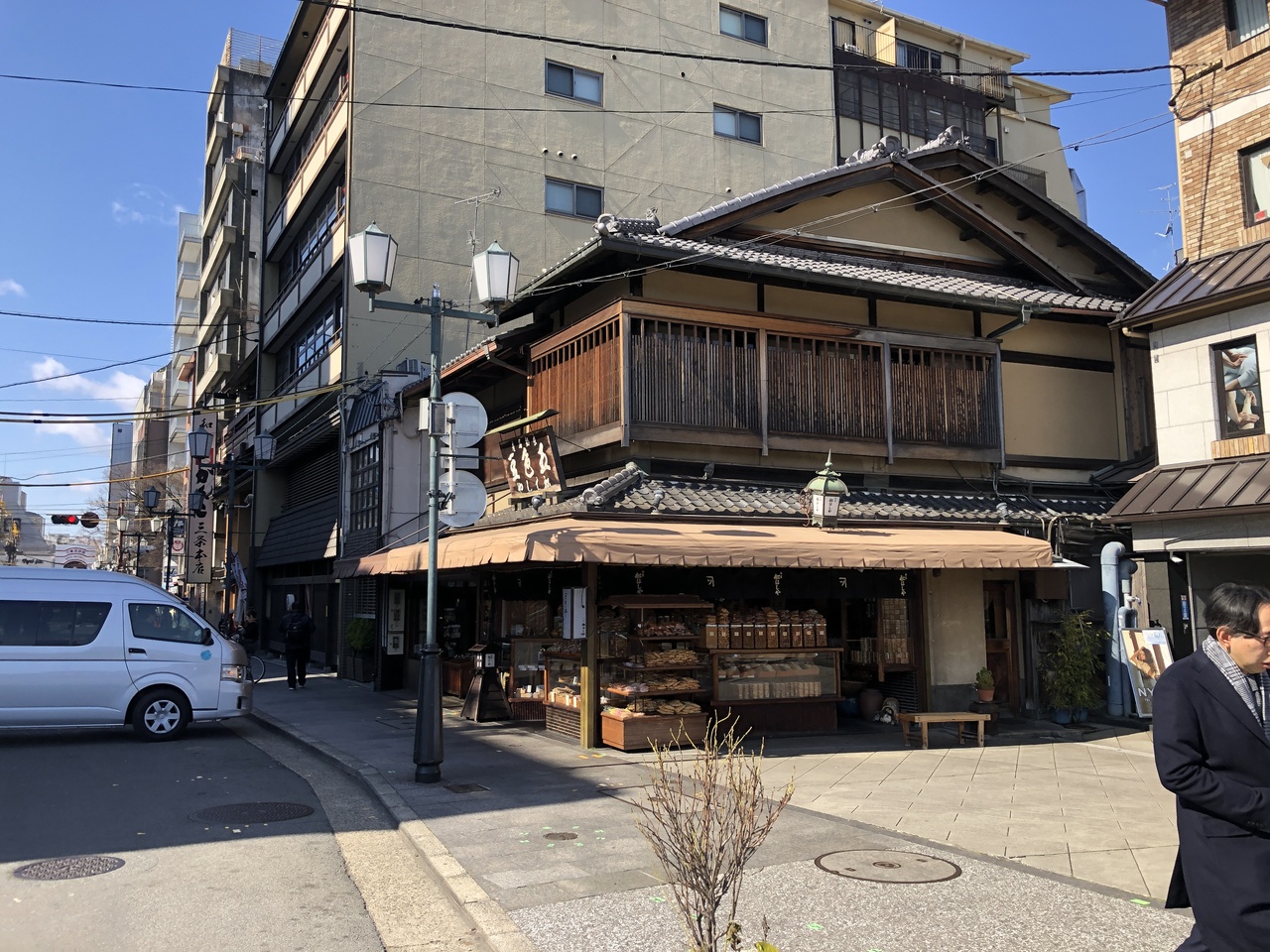 京阪三条駅から三条大橋を西へ渡ると一気に繁華な街並みとなる。新しいビルや店が立ち並ぶ中で、時間が止まったような一画がある。そこにあるのがおかきやおやつ豆類を売る店である。ガラスケースに綺麗に並べられたおかきや豆が目を引く