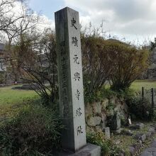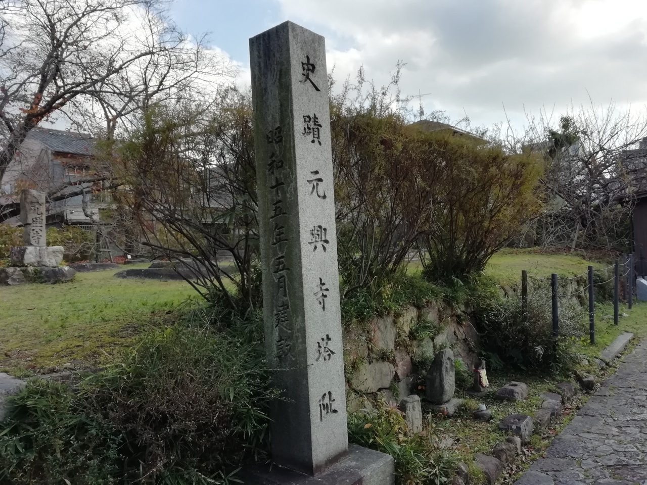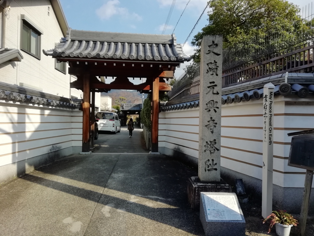 近鉄奈良駅から徒歩20分ほどにあります。民家に囲まれた一角にその敷地があり、正直、こんな場所に?といった少し信じられない感じでしたが。門前には「史跡元興寺塔跡」の碑が立っていますので、すぐにわかるかと思います。江戸時代末期(1859年)に焼失し、まだ160年ほどしか時を経ていないので、しっかりとした状態で基壇や礎石が残っています、是非。