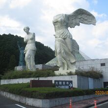 サモトラケのニケ、ミロのビーナスと、後方にアメリカの自由の女神が見えます。