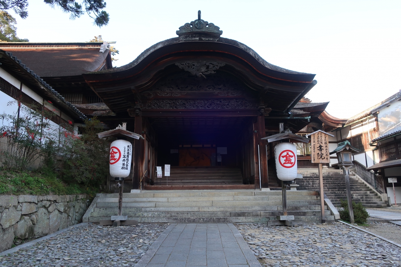 金刀比羅宮の御本宮へ行く途中(477段目)にありました。入母屋造り、檜皮葺きの表書院は重要文化財のようです。また、表書院では、円山応挙の障壁画が公開されているようです。今回は、外観だけ見学しました。ちなみに、奥書院は公開されていません。