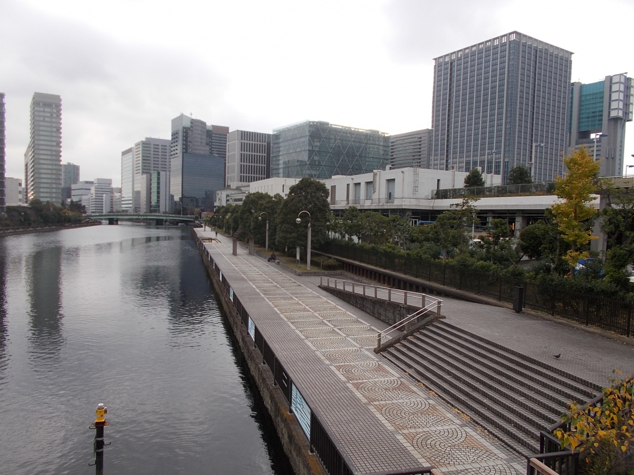 この高浜運河沿緑地はJR山手線と京浜東北線の品川駅から東15分程度の場所に駅と並行して南北につながっている運河です。そのうち沿緑地があるのは北側のエリアです。遊歩道になっています。運河沿いの散策が楽しめます。