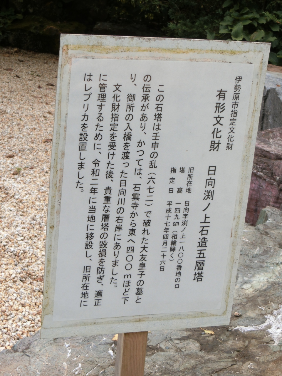 大友皇子は百済の若者を身代わりに自害したと偽り、本人はこの伊勢原の日向に逃れ、静かに生涯を閉じたとか。。。