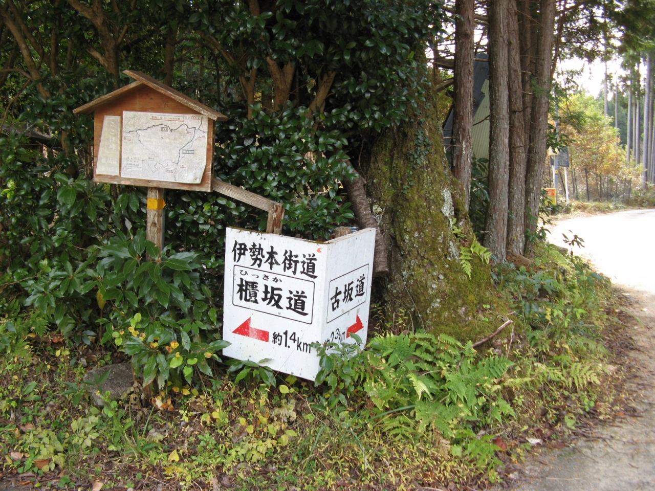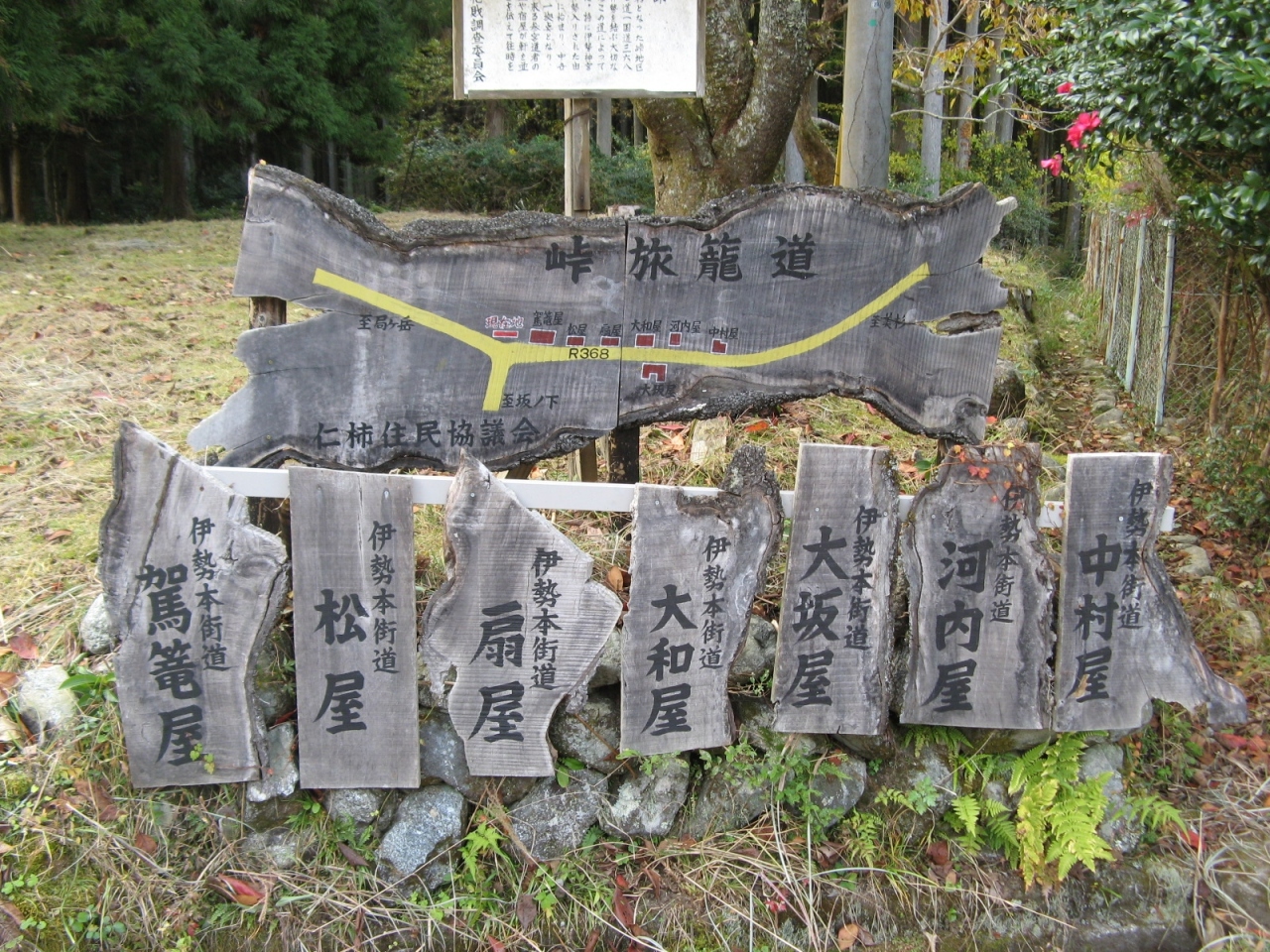 伊勢本街道の櫃坂道から古坂道付近(添付写真参照ください)を歩きました。峠付近は江戸時代末には西国から来る伊勢参宮者達の宿場として茶屋や宿屋として栄えていたそうで、今はそれらの遺構が少し残っているだけで建物などは無かったが静かでとてもいい雰囲気のところでした。訪れたのが11月の中頃で紅葉がとても綺麗かったです。