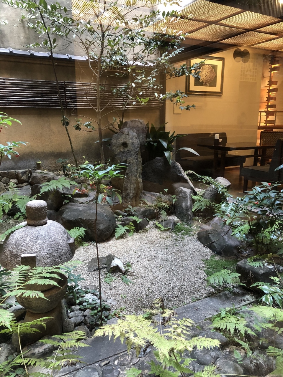 見た目は和菓子屋さんなのですがお店の左側に喫茶の入り口があり、入ると思っていた以上に奥が広く小さい中庭が中心にありガラス張りになっています。席も広くとってあるのでゆったり食事ができます。寒かったのでなべ焼きうどんを注文しましたが具材がたくさん入ってお出汁もおいしく大満足でした。単品で注文したのに和菓子が付いてお得でした。食事をしたら注文できる小さめの甘味もお得です。小さめと言いながらけっこう大きかったですよ。