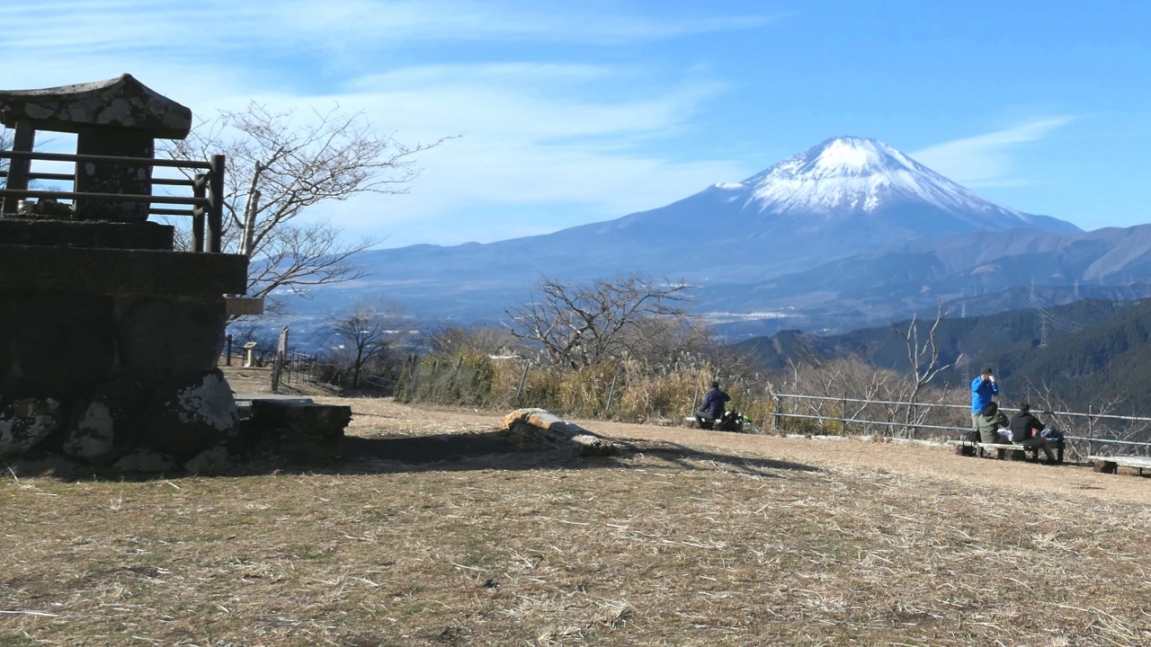標高は723.1m、山頂は広く、ベンチも多数。富士山、丹沢山塊、丹沢湖を眺めながらのんびりハイキングです。