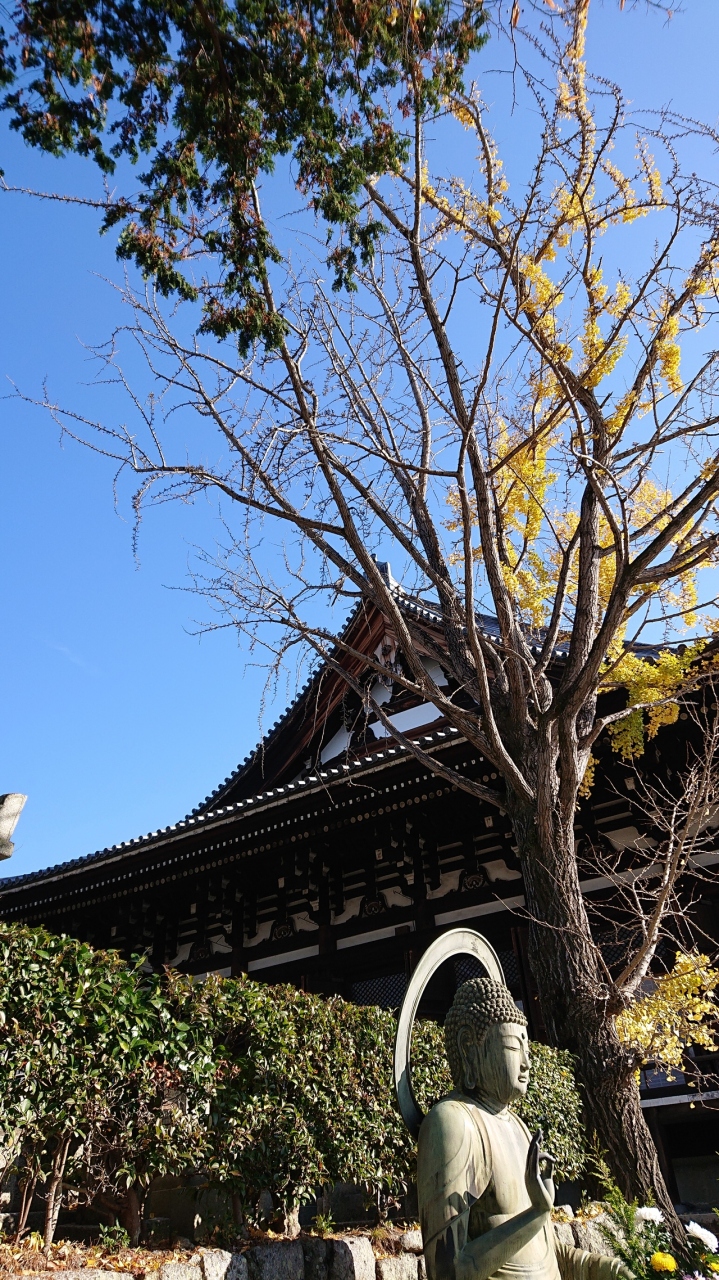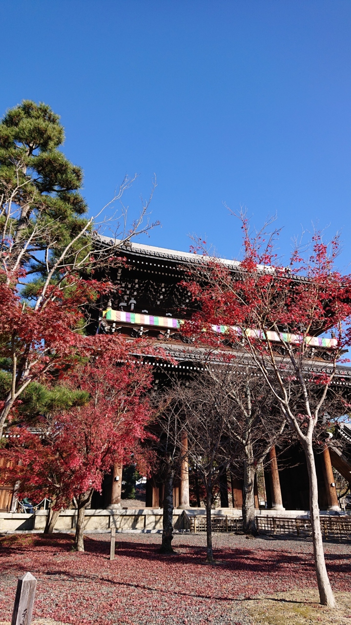 11月末の紅葉シーズンに、永観堂からタクシーに乗って金戒光明寺に行きました。まず入口で、立派な山門が出迎えてくれます。紅葉に映えて見事です。歴史上のいろいろな場面に登場するお寺で、重みを感じました。境内に入るだけなら無料です。