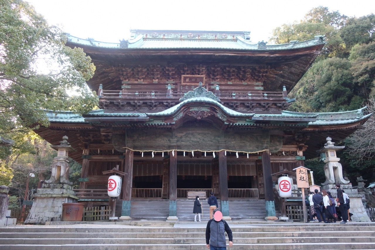 金刀比羅宮の長い石段をずいぶん上ってきたところで旭社が見えてきます。ちょうど628段目です。二層入母造の建物で、精巧で美しい彫刻が施されています。とても大きな建物なので、ここが御本宮と間違えてしまいそうでした。旭社は御本宮を参拝後に参拝するのが習わしです。ちなみに、重要文化財に指定されています。