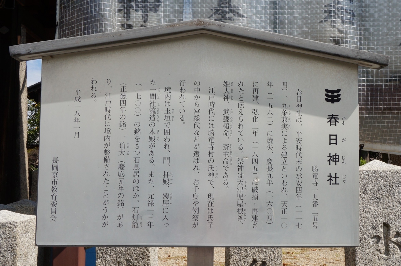 境内に春日神社があります、勝竜寺地区の氏神様をお祀りしています。
