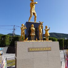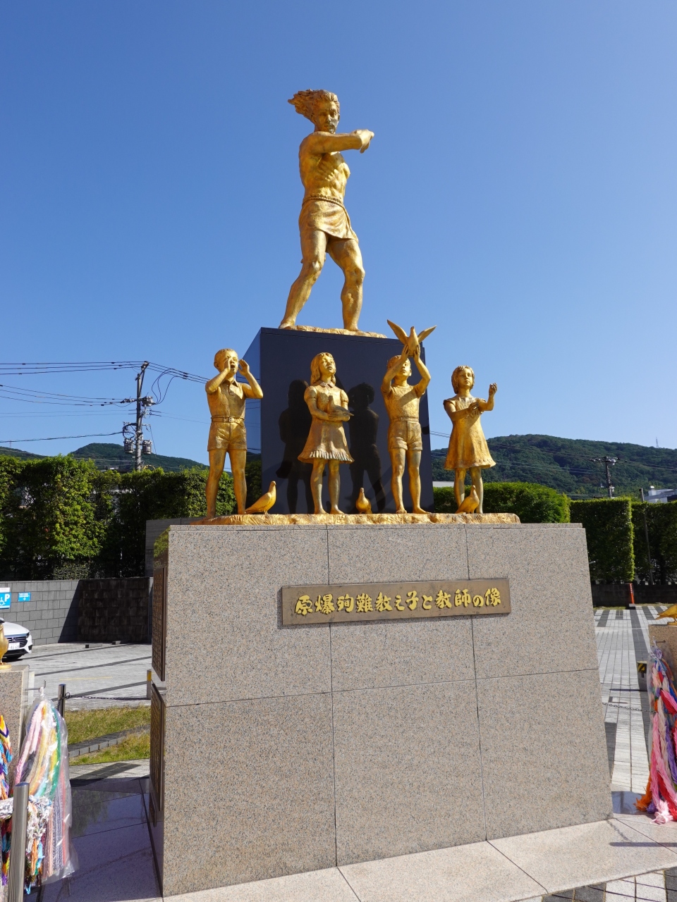 原爆資料館に隣接した「長崎市平和会館」前の広場に設置された像です。この近辺には数多くの像やモニュメント、オブジェなどがありますが、こちらの像は「明日に向かって強く生きよう」というメッセージを感じるもので、力強さがあります。子どもたちが皆顔をあげて上を向いているのも印象的でした。